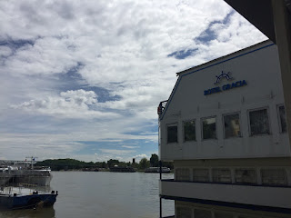 beber um café num Hotel/ Barco, no Rio Danúbio.