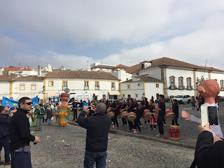 Évora estava cheia de gente, uma multidão, para ver o cortejo...e havia música e tambores e dança...